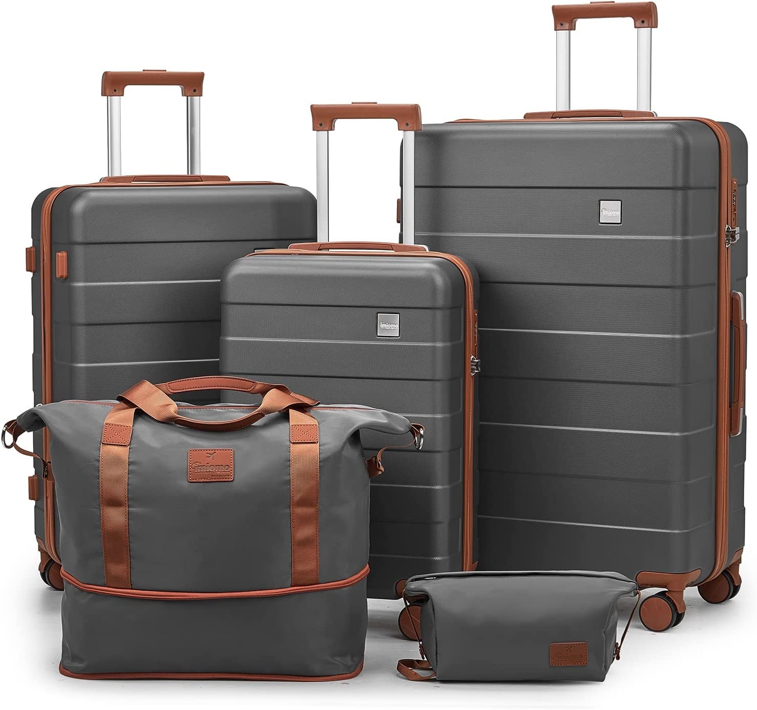 Variety of combinations for your choice: the five-piece luggage set includes 20/24/28 three sizes of luggage, as well as a travel bag and a toiletries bag. Three sets are divided into three kinds: 20-inch luggage, as well as a travel bag and a toiletries bag; 24-inch luggage, as well as a travel bag and a toiletries bag; 28-inch luggage, as well as a travel bag and a toiletries bag. Make your trip more convenient.