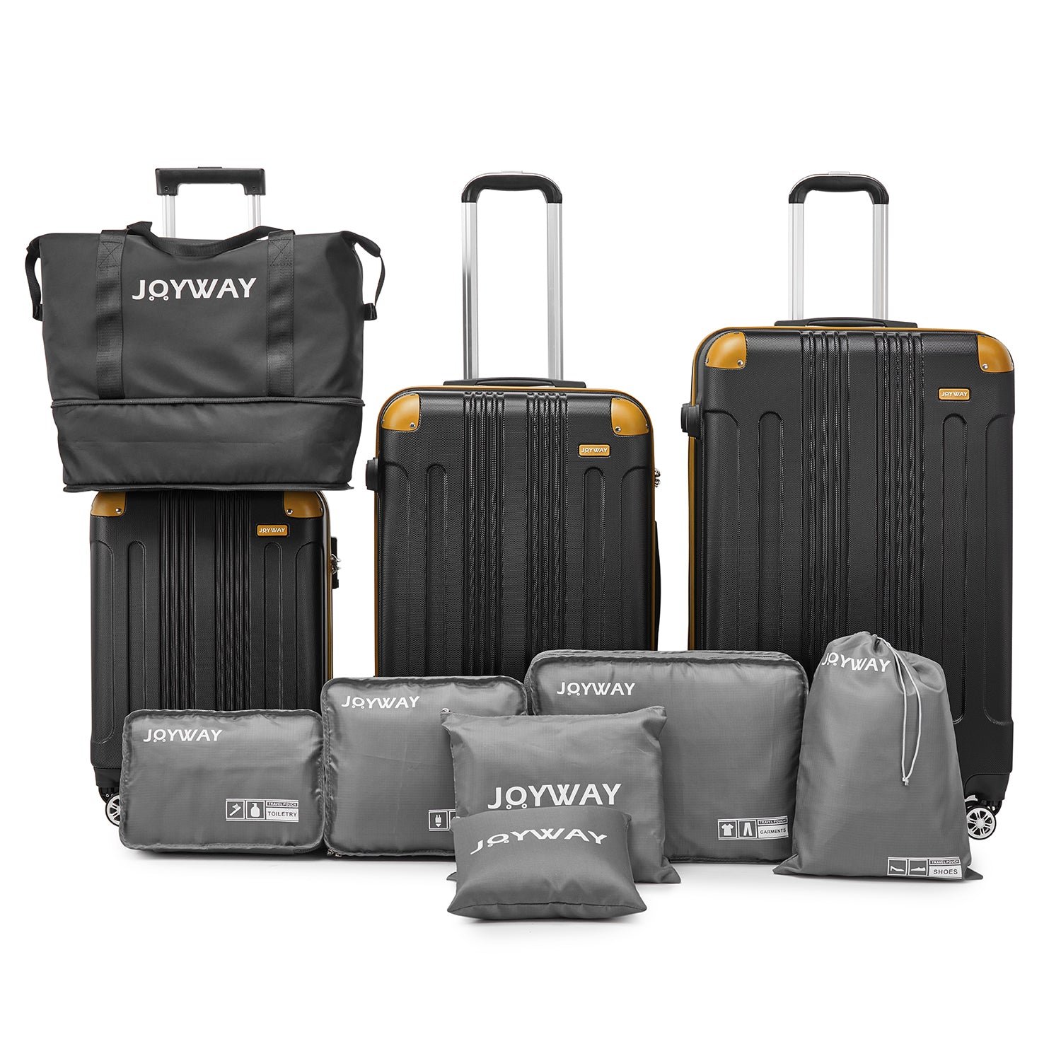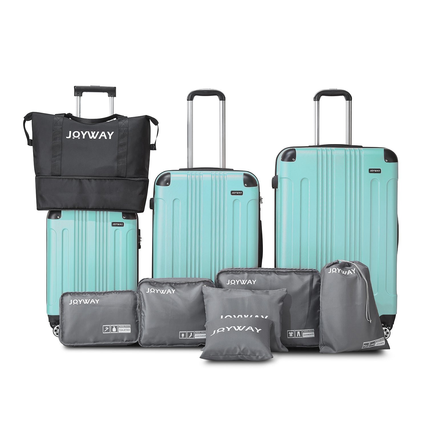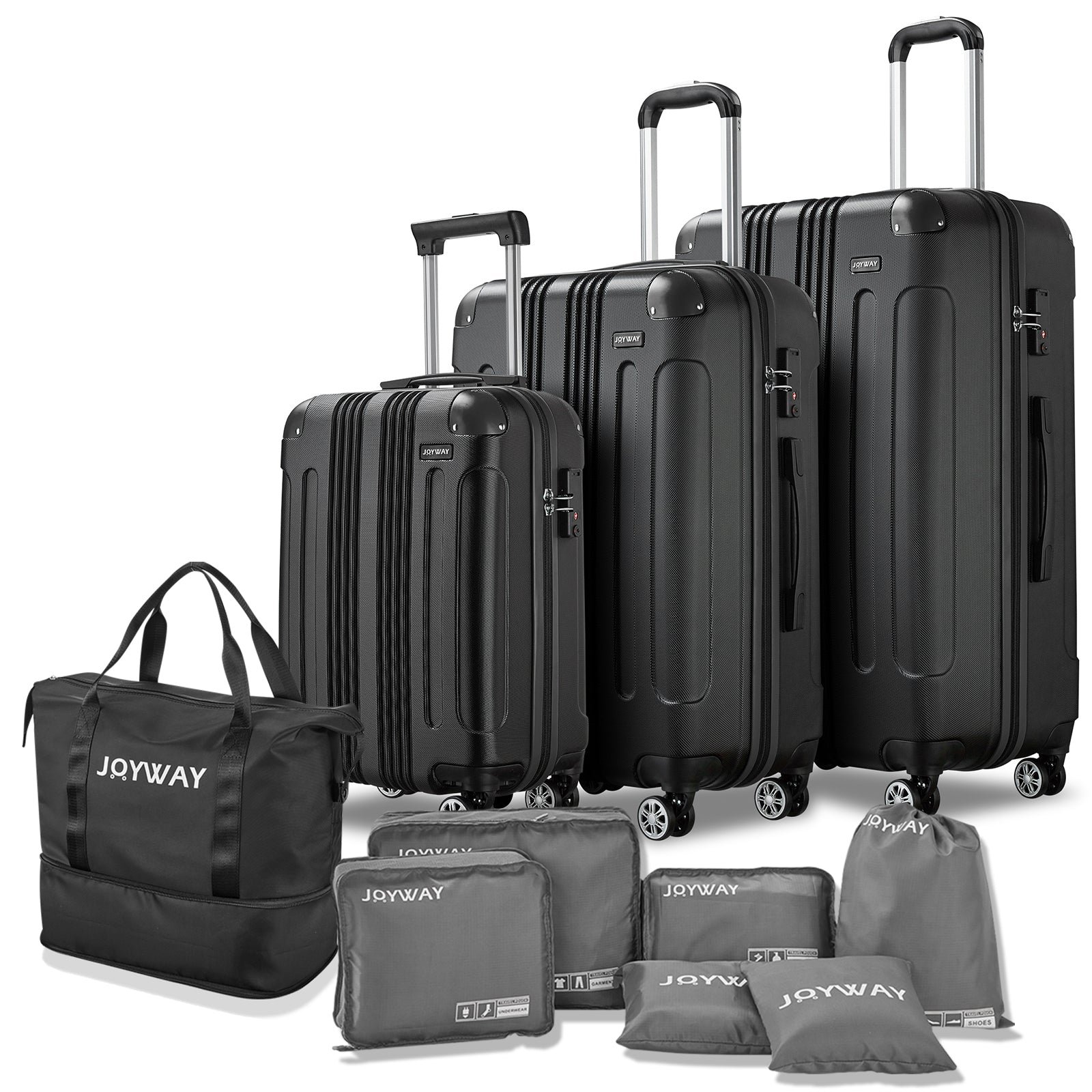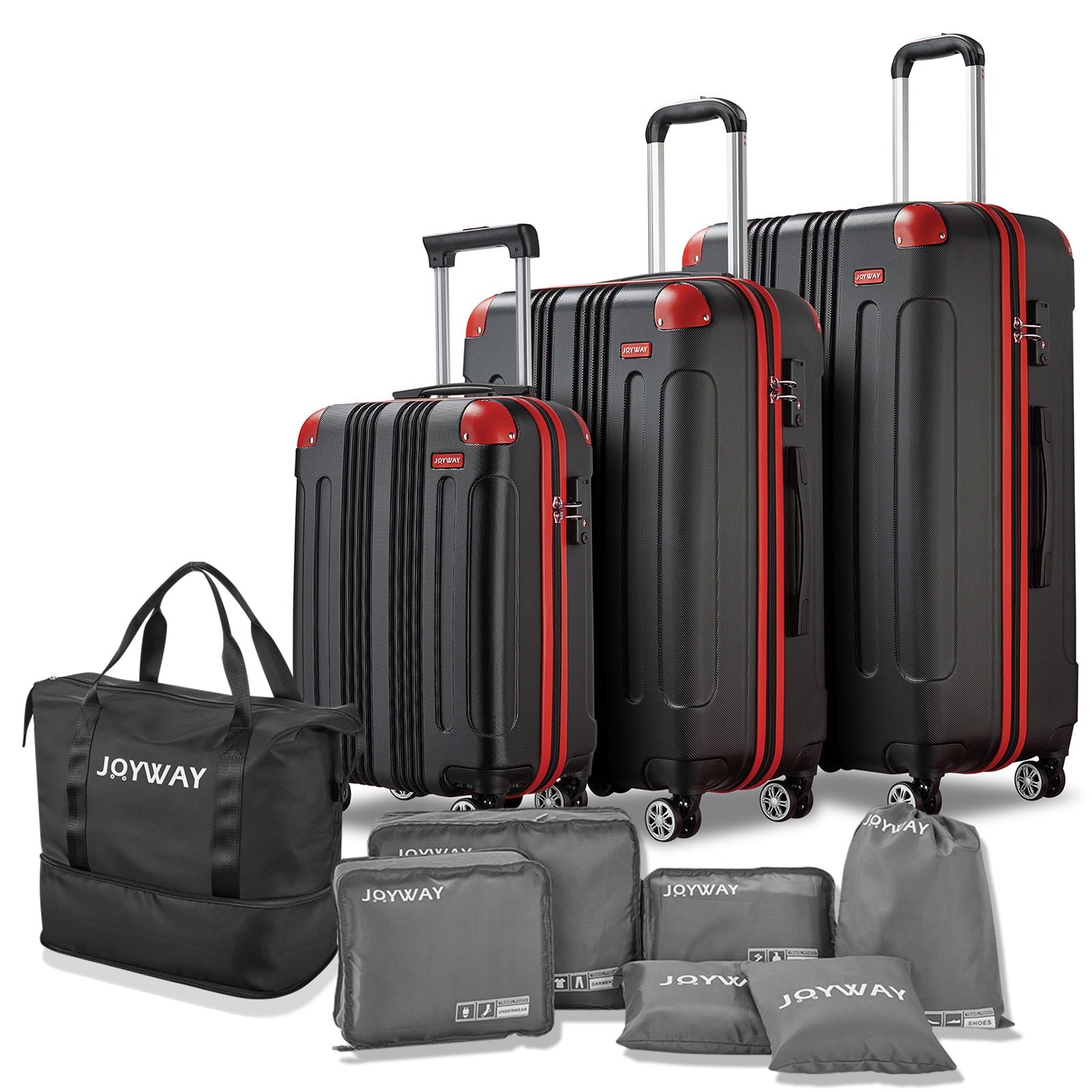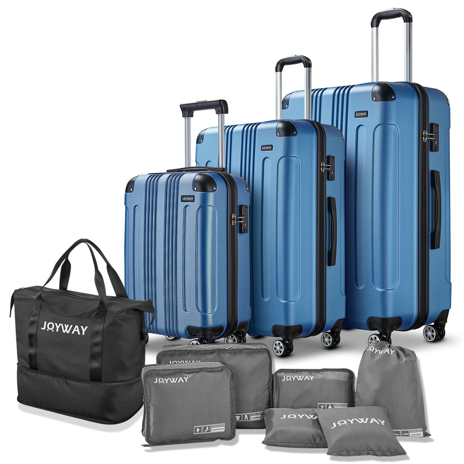 Ten-Piece Luggage Set: Our product is equipped with a handbag, which can be folded and stored in your luggage set with the smallest space. It can help you increase the capacity of your suitcase set at any time. A 6-piece wash storage bag can help you sort your clothes and shoes better, and store them more reasonably.