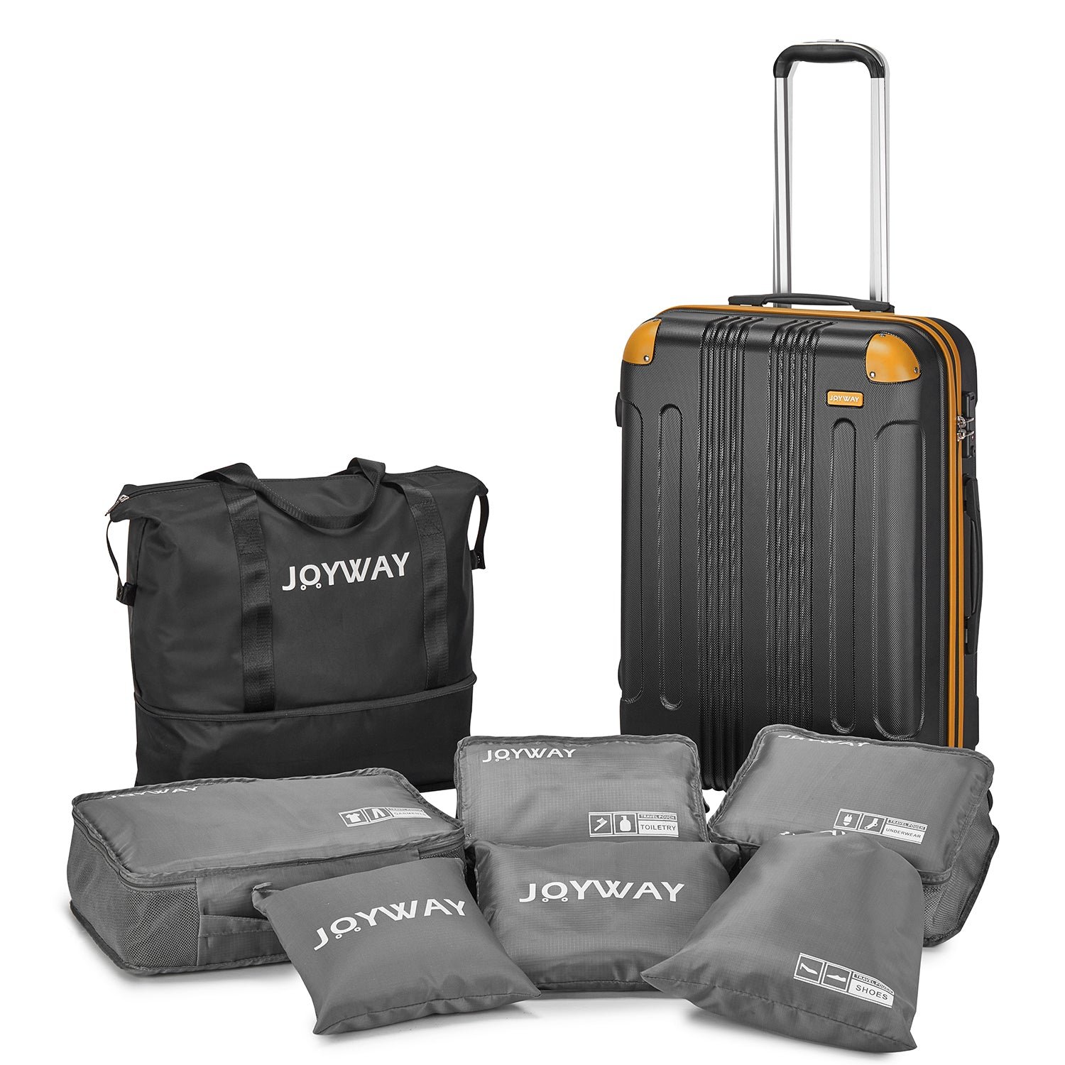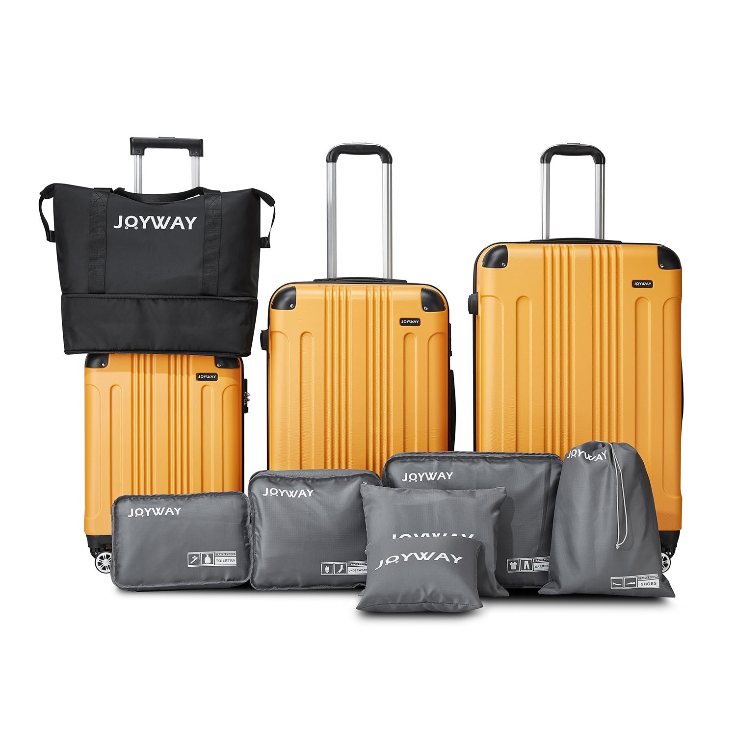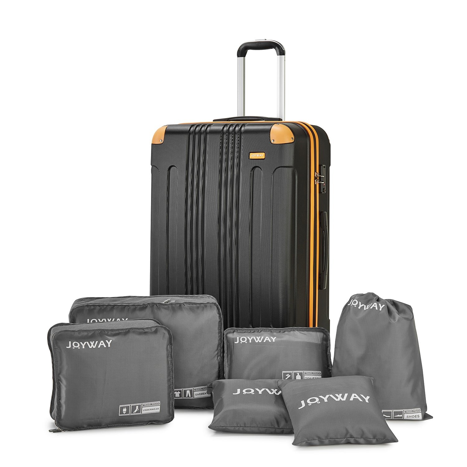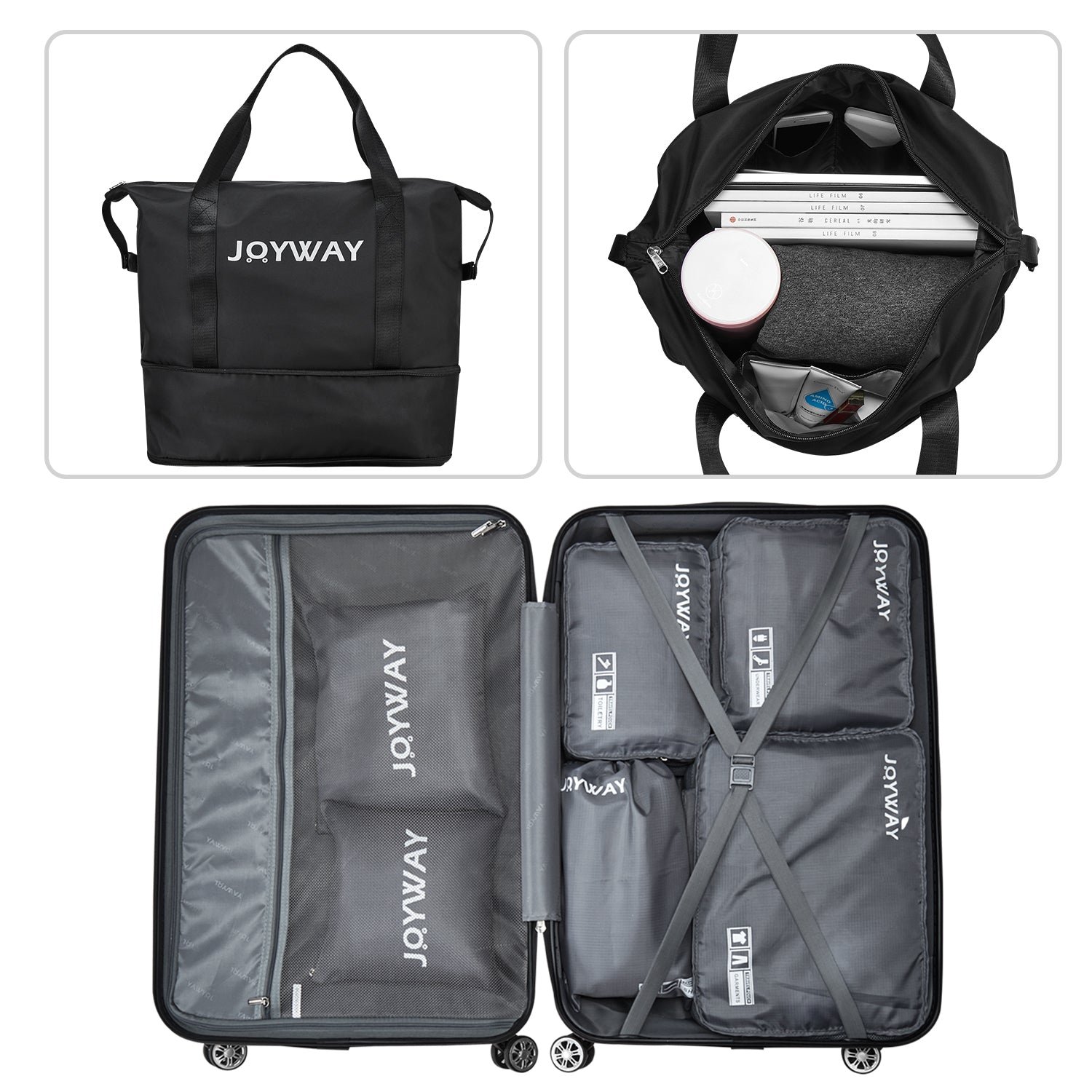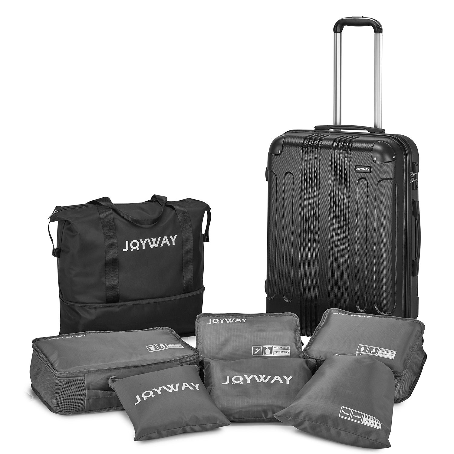 Ten-Piece Luggage Set: Our product is equipped with a handbag, which can be folded and stored in your luggage set with the smallest space. It can help you increase the capacity of your suitcase set at any time. A 6-piece wash storage bag can help you sort your clothes and shoes better, and store them more reasonably.