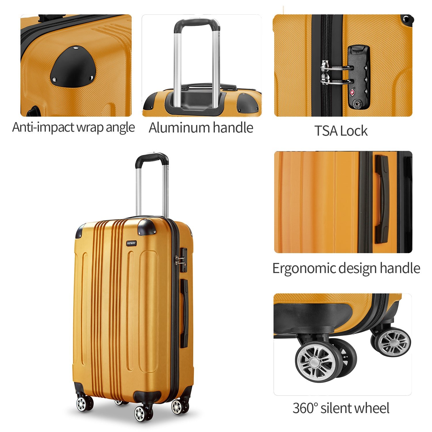 Hard Shell Luggage Design: The corner design on the edge of the travel suitcase makes the box stronger and protects your luggage from damage to the greatest extent. The ABS material box shell is lighter and more impact resistant. The box surface is designed with a texture. It is scratch-resistant and wear-resistant.