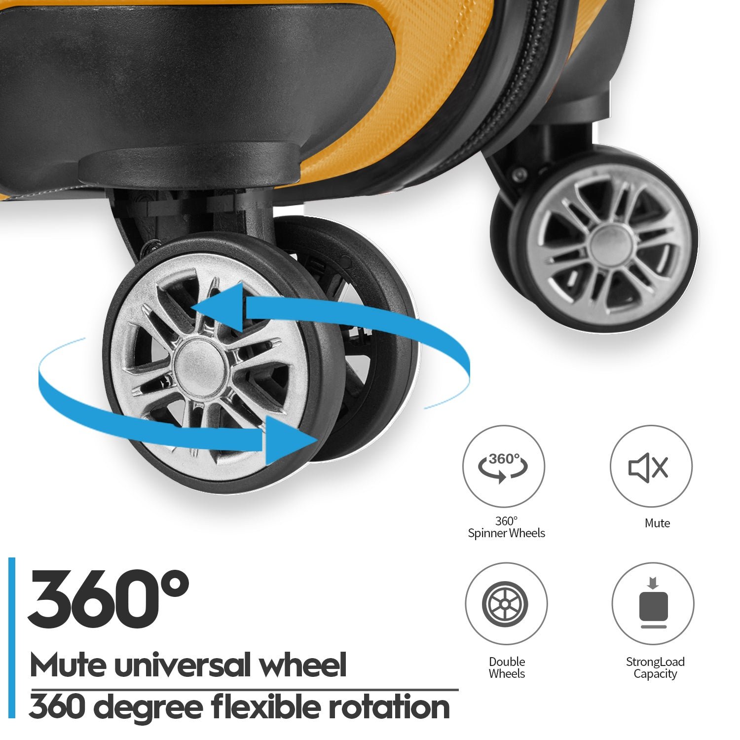 • Universal Spinner Wheels: The luggage is equipped with silent universal spinner wheels. The 360-degree double-wheeled universal wheels allow you to easily pull the suitcase from any direction. The wheels are designed to be silent to the greatest extent. The suitcase has undergone a lot of drop and walking tests, making you the best choice for long-term travel.
