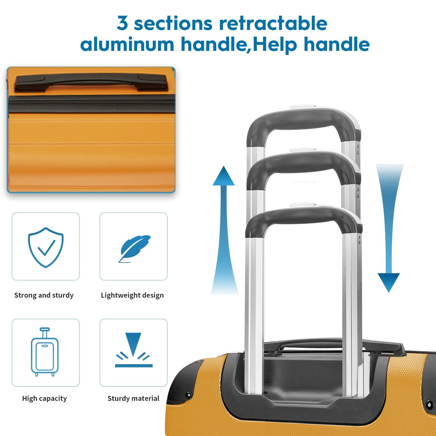 • Three-Section Aluminum Handle: Large suitcase handle adopts a three-section telescopic design, allowing you to adjust the length according to your needs in any situation. The aluminum rod is designed to be very sturdy and has undergone tens of thousands of shock tests, allowing luggage sets for women to easily face the airport Violent loading and unloading.